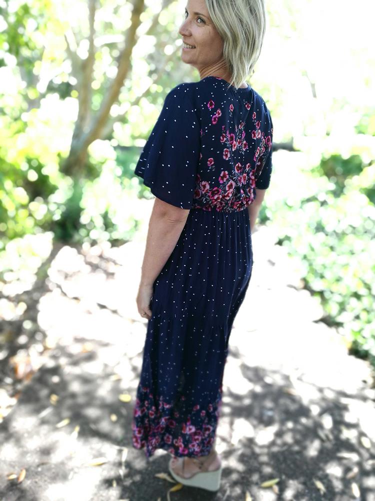Isabella Boho V-Neck Maxi Dress Navy Floral